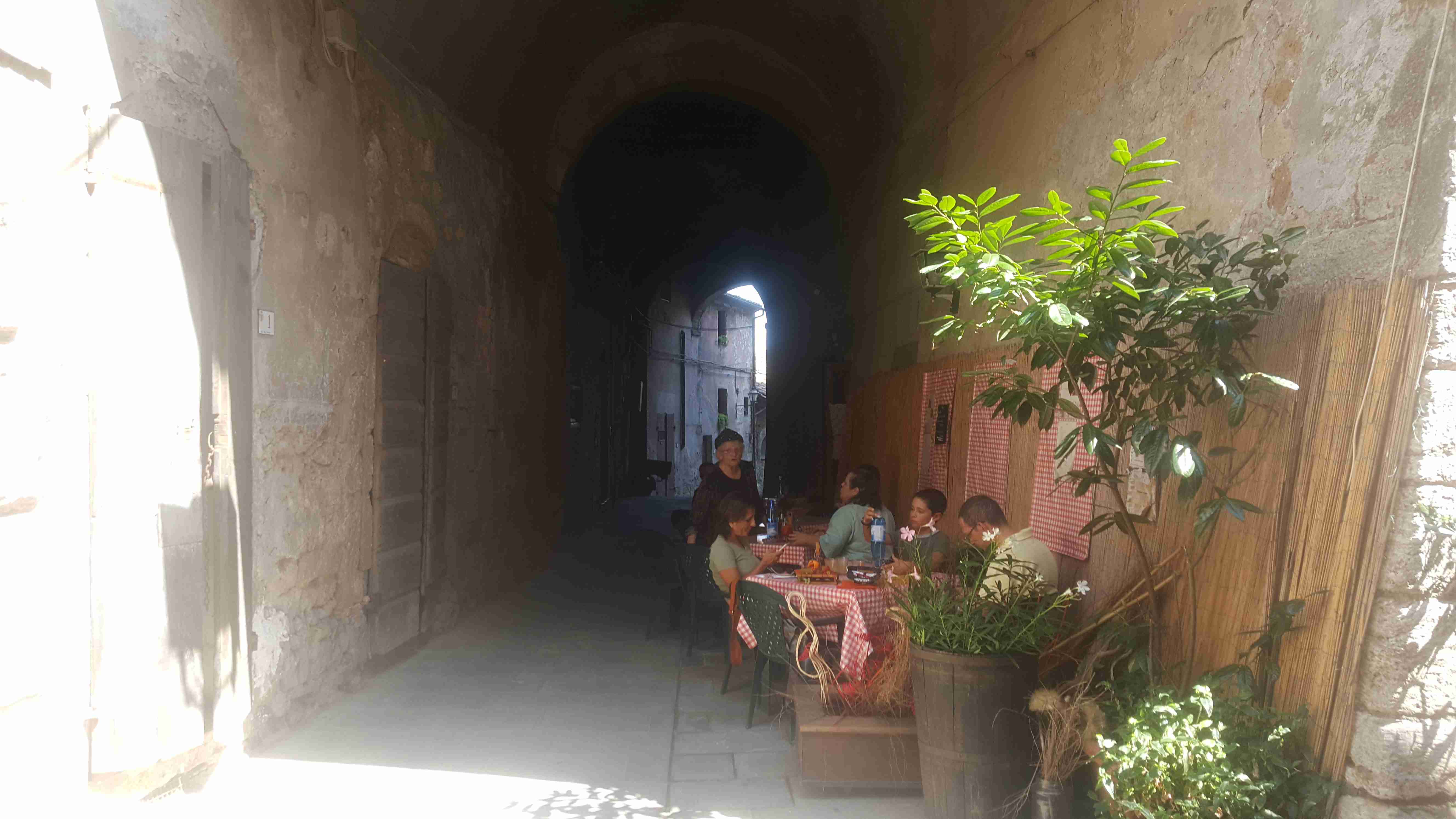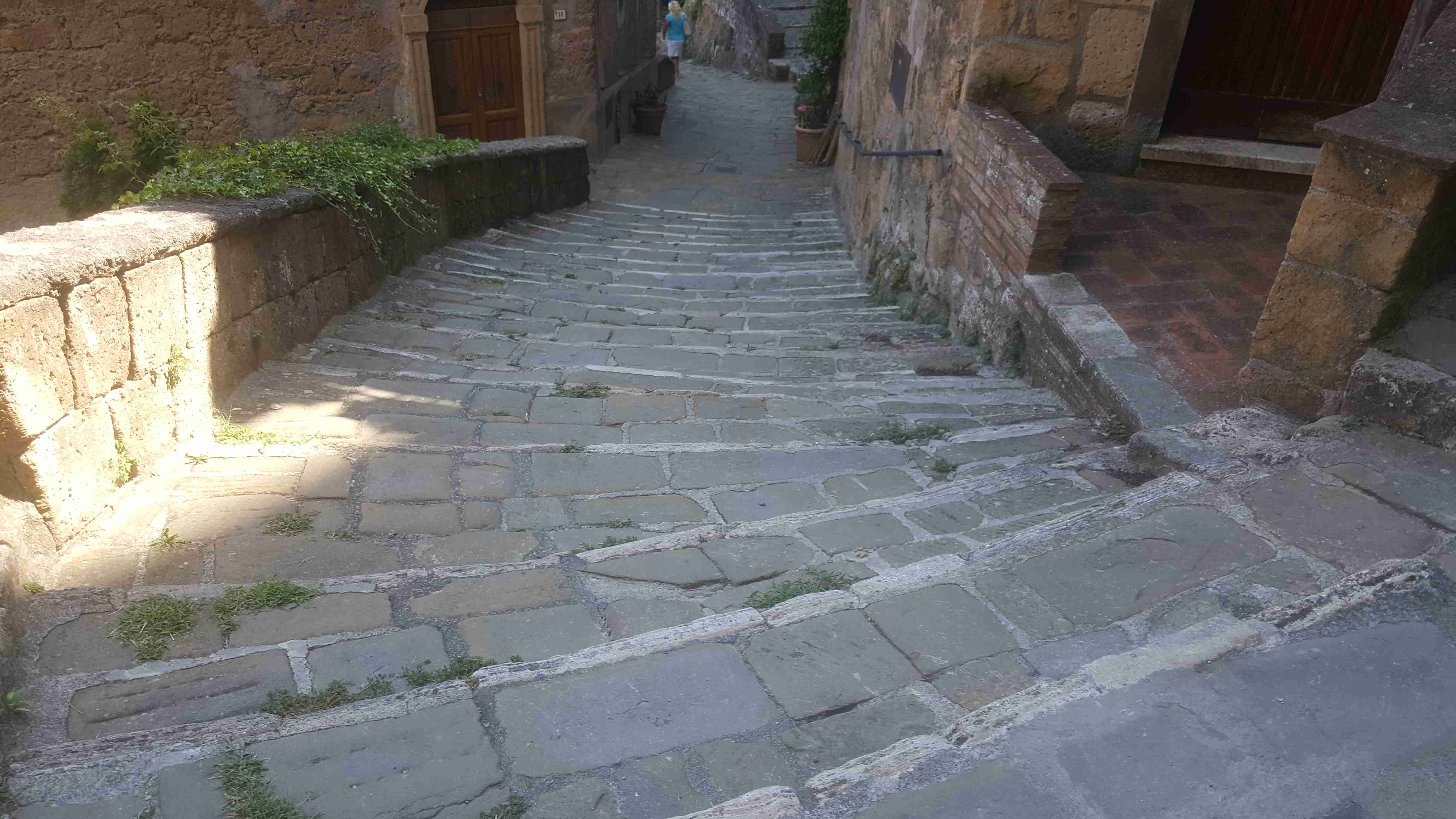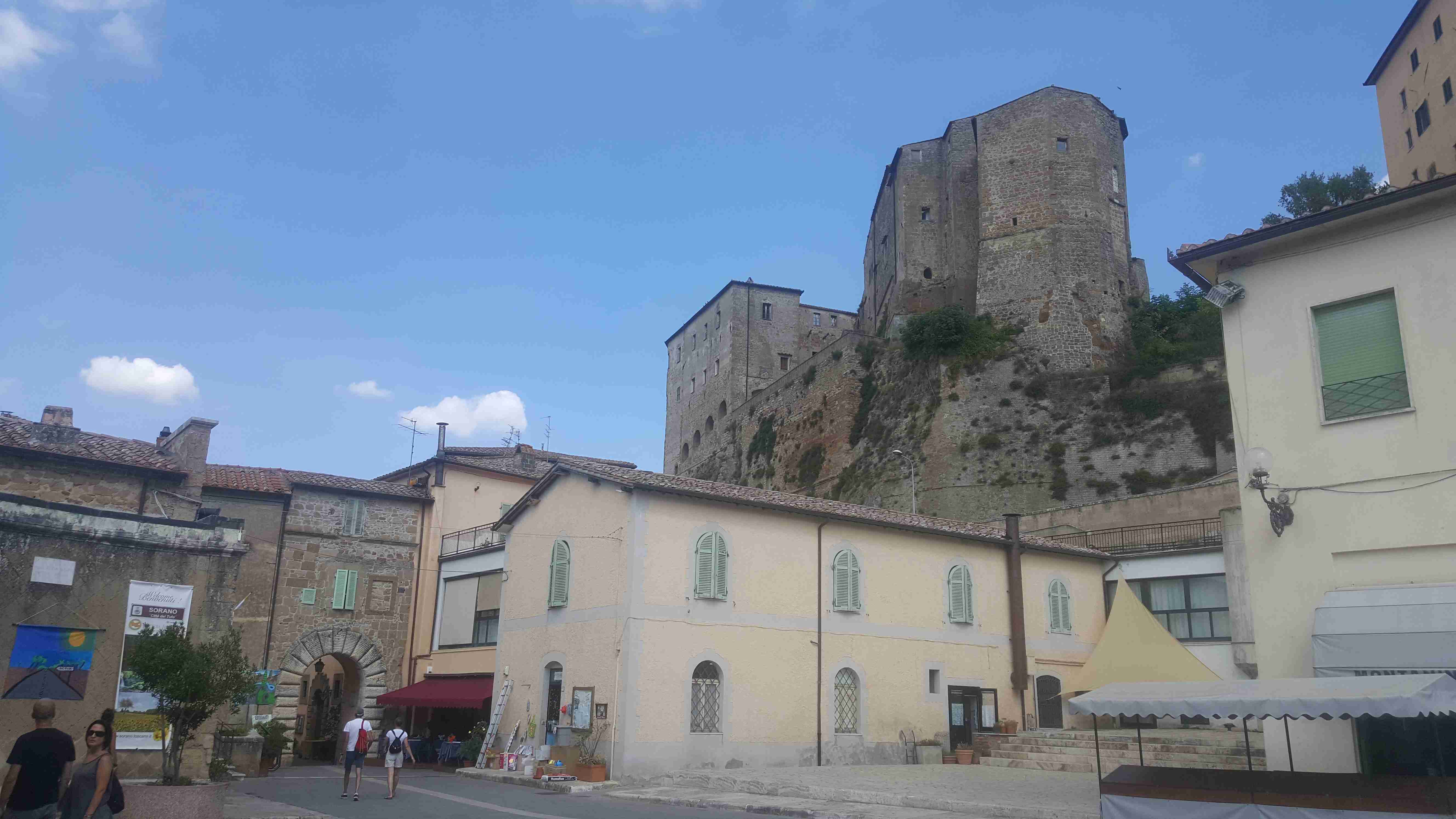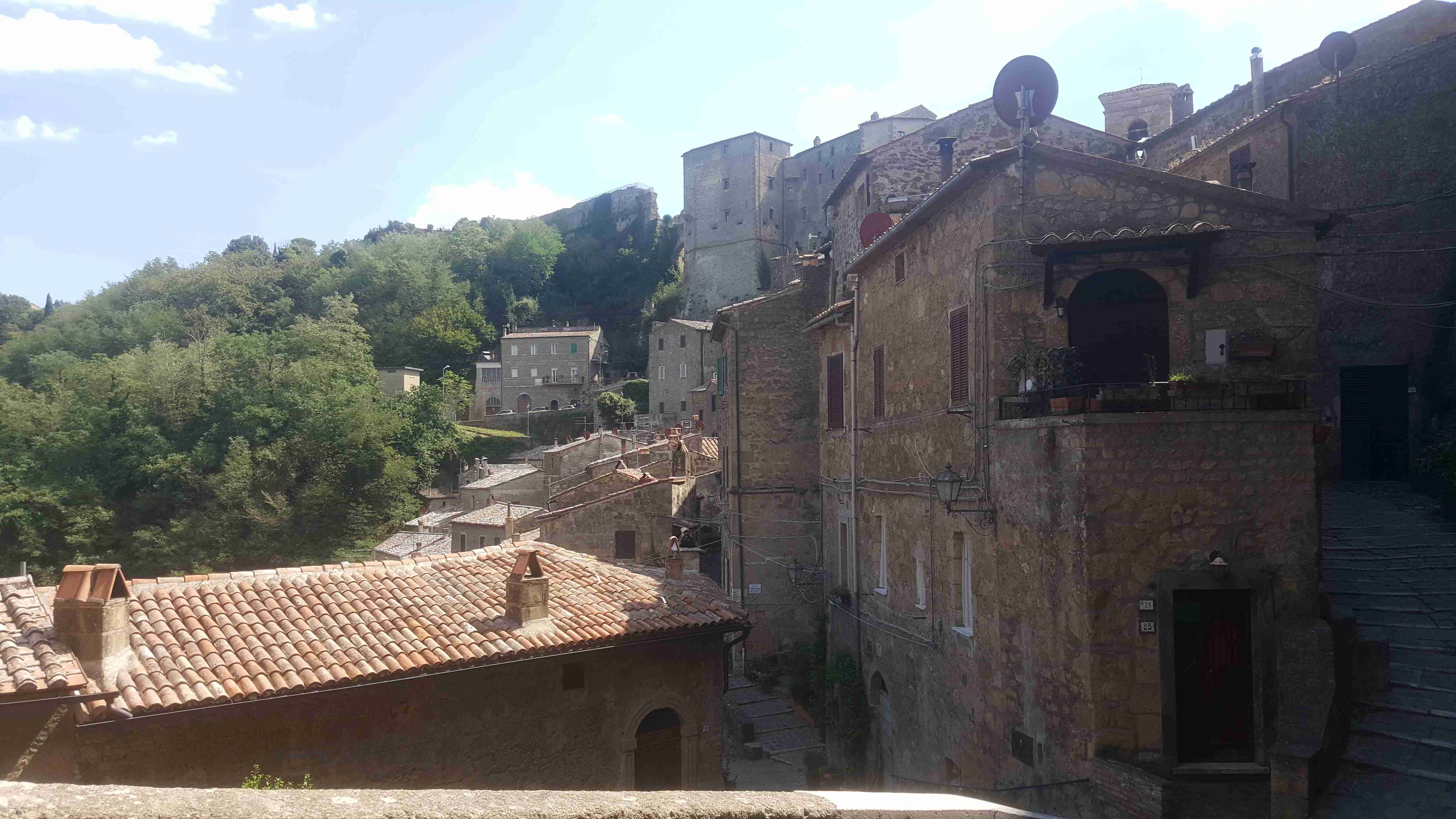 Dnešní etapa nesla název Etruskové, neboť hlavním cílem byla návštěva dvou etruských měst – Sorana a Pitigliana, obě leží na kopci a dostat se do nich bylo pro nás v tom vedru značně vysilující. Vyjížděli jsme na kolech přímo od hotelu a prvních cca 15 km přes Piancastagnaio a Saragiolo bylo spíše do kopce. První zastávka byla v Selveně, kde jsme si dali s brněnskými přáteli malé občerstvení. To jsme již klesali, ale kousek za Selvenou nás čekal další cca 2 km kopec. Dalších zhruba 10 km jsme spíše klesali, ale Sorano leží na kopci, takže znovu makačka v poledním žáru. Sorano jsme si prošli, v hospůdce v průchodu jsme si dali pivo a poté jsme pokračovali – ze Sorana opět dolů, pak dalších 5 km do kopce a opět 5 km z kopce pod Pitigliano, do kterého byl opět kopec jako kráva. Kola jsme odložili na začátku historického centra a šli jsme se kousek projít, koupili jsme si zmrzlinu, která nás však příliš neochladila. Z hradeb jsme si prohlédli zbytek naší cesty – prudký sjezd dolů k řece, po mostě a opět prudký kopec nahoru. Času již nebylo nazbyt a tak jsme raději vyrazili, aby na nás autobus nečekal. Přežili jsme to, ale byla to asi nejnáročnější toskánská etapa.