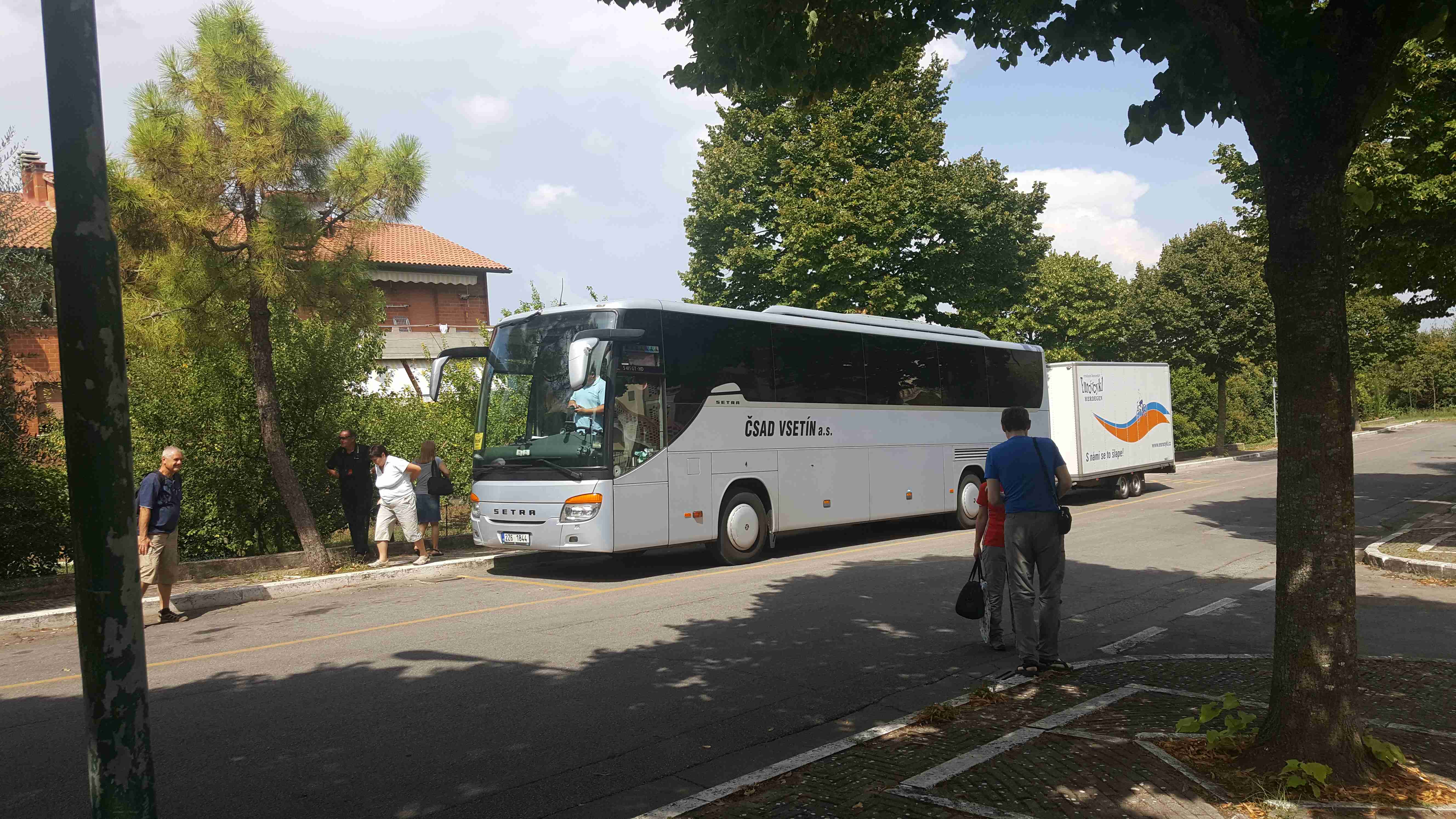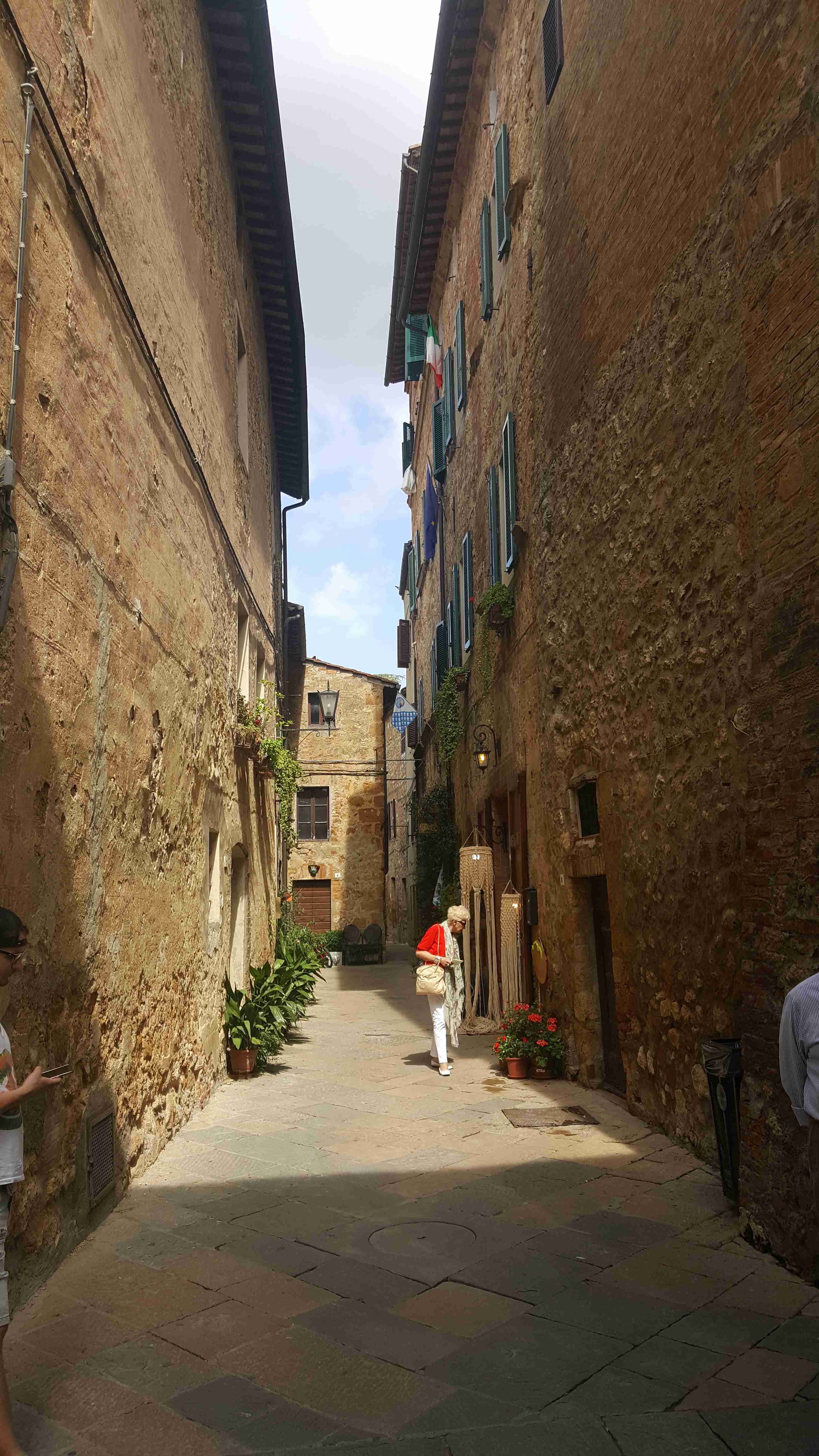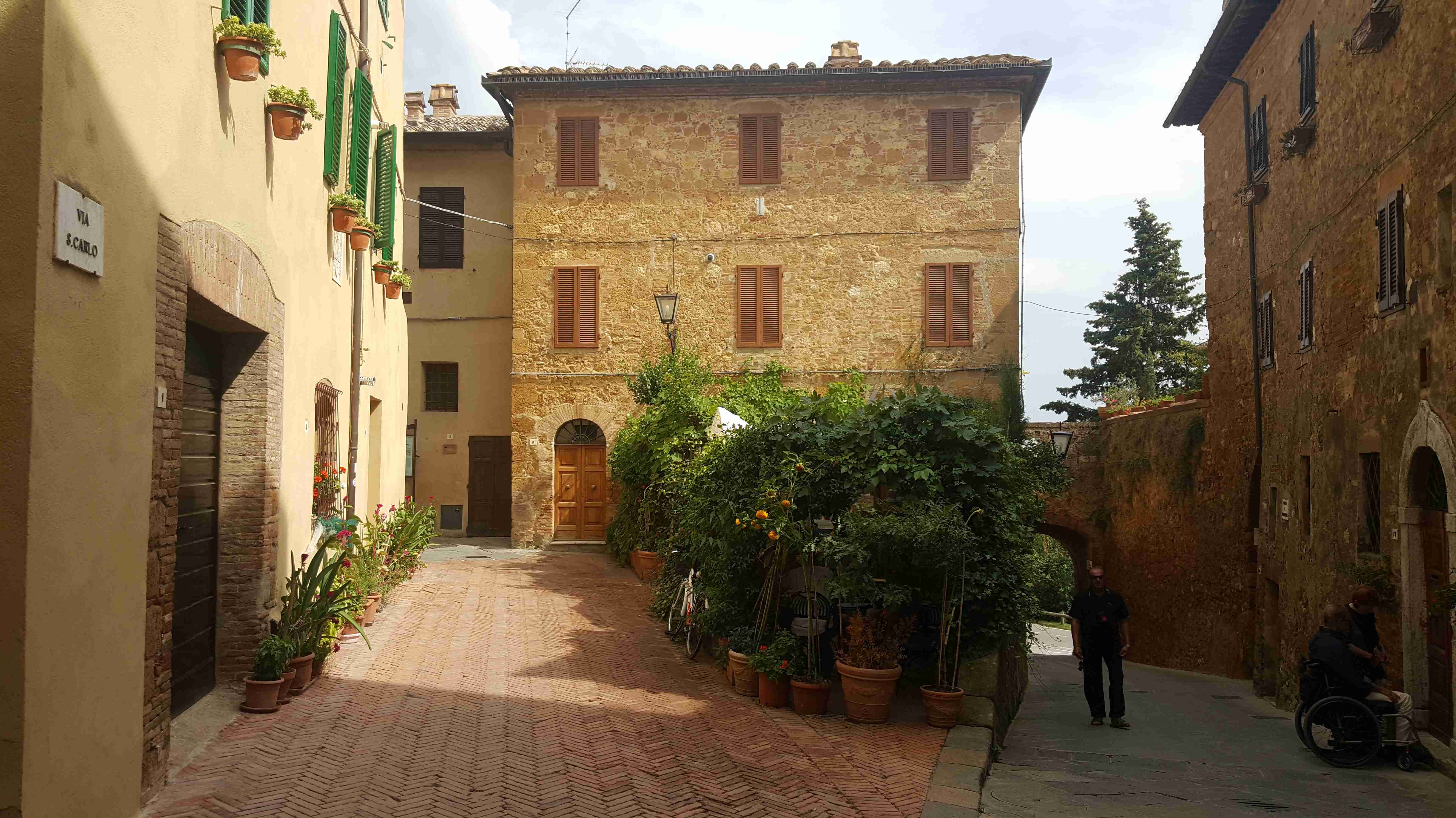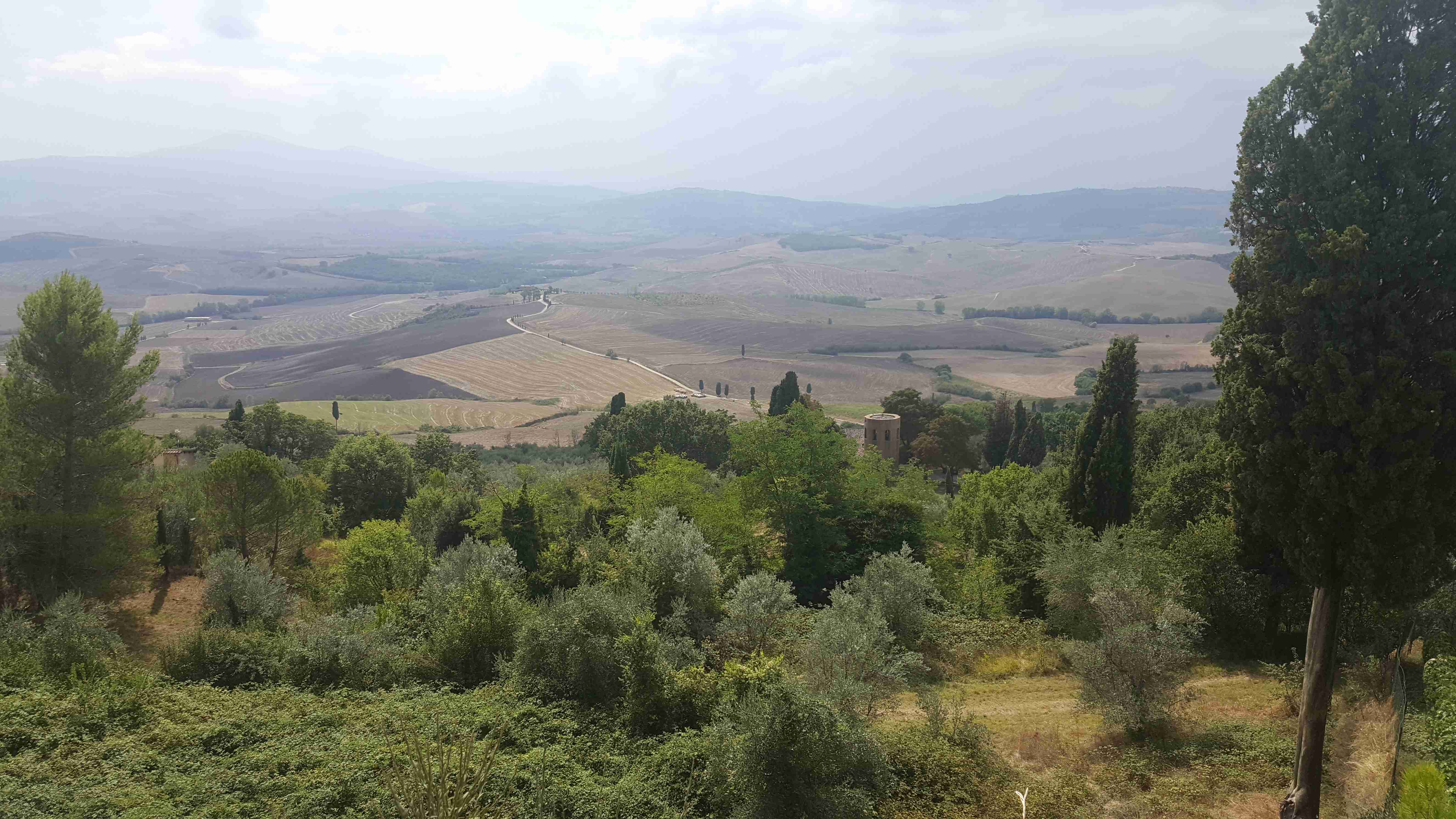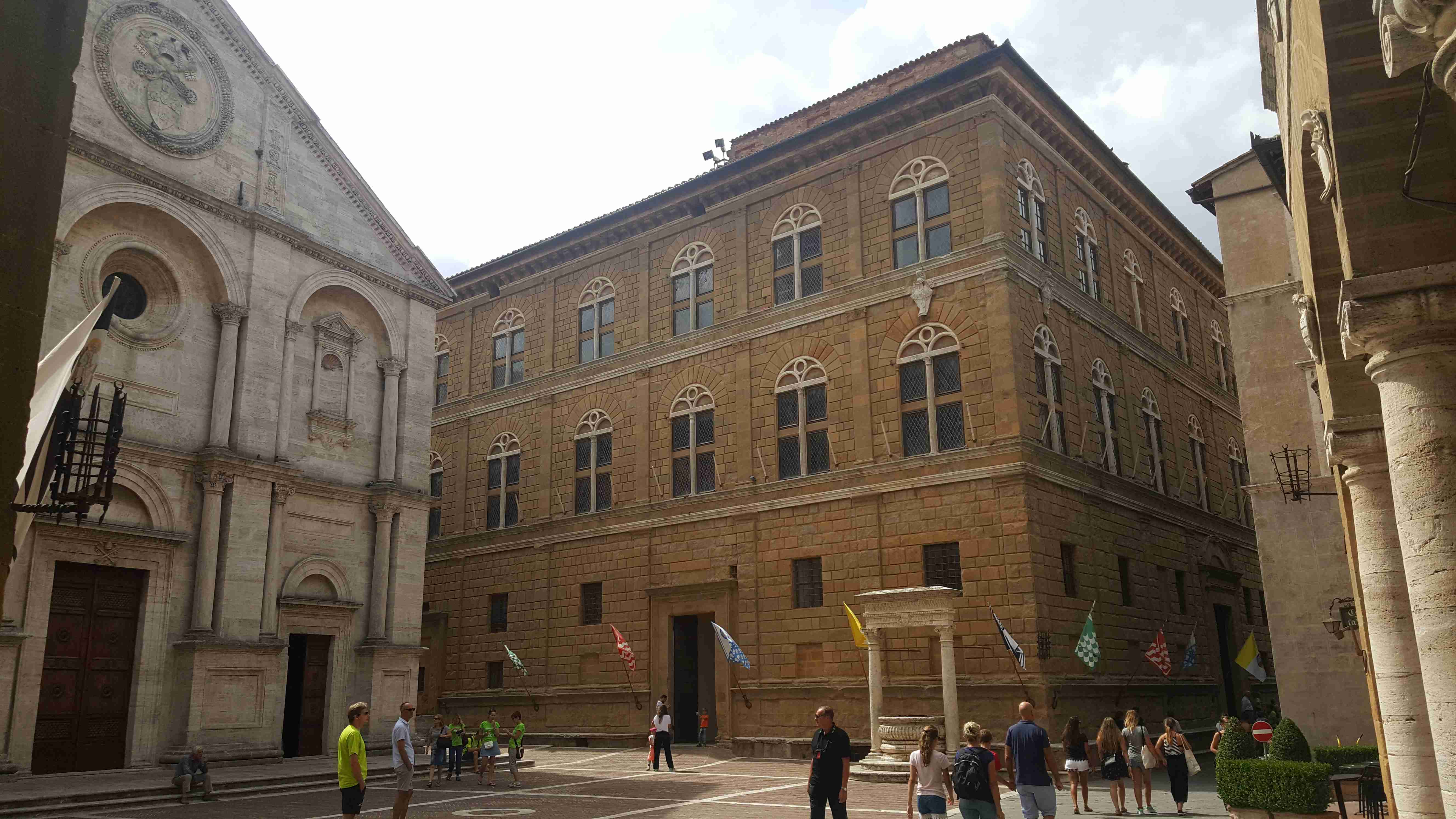 Po snídani jsme se opět naložili do autobusu a pokračovali v cestě. Minuli jsme Modenu, Bolognu, Florencii a Arezzo a po 13. hodině jsme u městečka Bettole sjeli z dálnice a zamířili do Pienzy, kam jsme dojeli v cca 13.45 hod. Pan Herdegen měl v plánu dopřát nám krátkou cyklistickou projížďku i na dnešní den, ale vzhledem k blížícímu se dešti nakonec zůstal u pouhé pěší prohlídky Pienzy, spojené s papežem Piem II, občanským jménem Piccolomini. Během následujících dvou hodin jsme si tedy prošli a nafotili historické centrum, především náměstí Pia II s katedrálou a palácem Piccolomini, ale i spoustu křivolakých uliček. Před opuštěním starého města jsme se odměnili skleničkou vína a pak již cestou po hradbách jsme pomalu došli k autobusu. V tu chvíli se spustil liják, někteří měli s sebou deštníky, někteří ne. Po 16. hodině jsme vyjeli na poslední část naší cesty a po necelých dvou hodinách jsme dorazili na úbočí vyhaslé sopky Monte Amiata do městečka Abbadia San