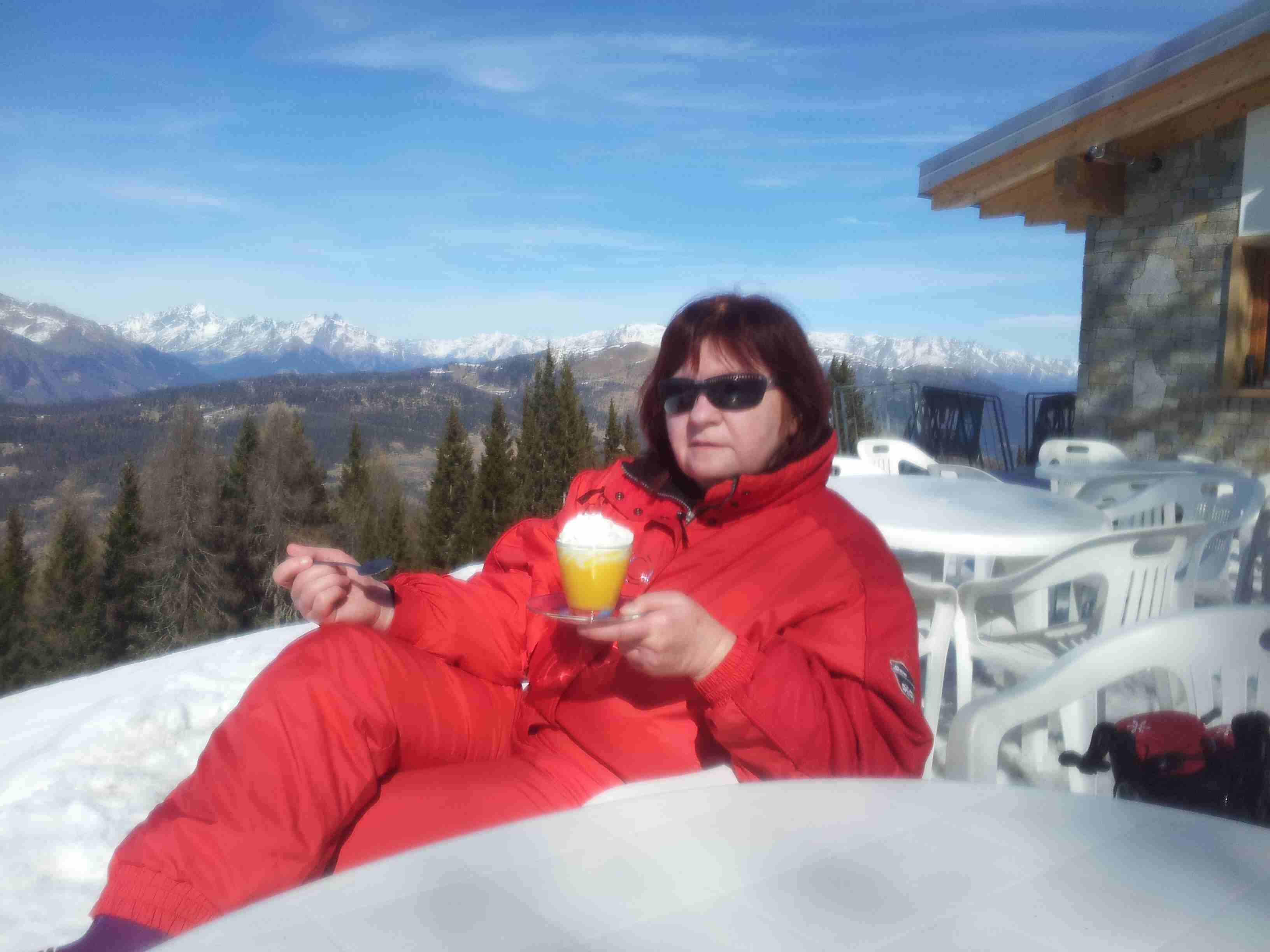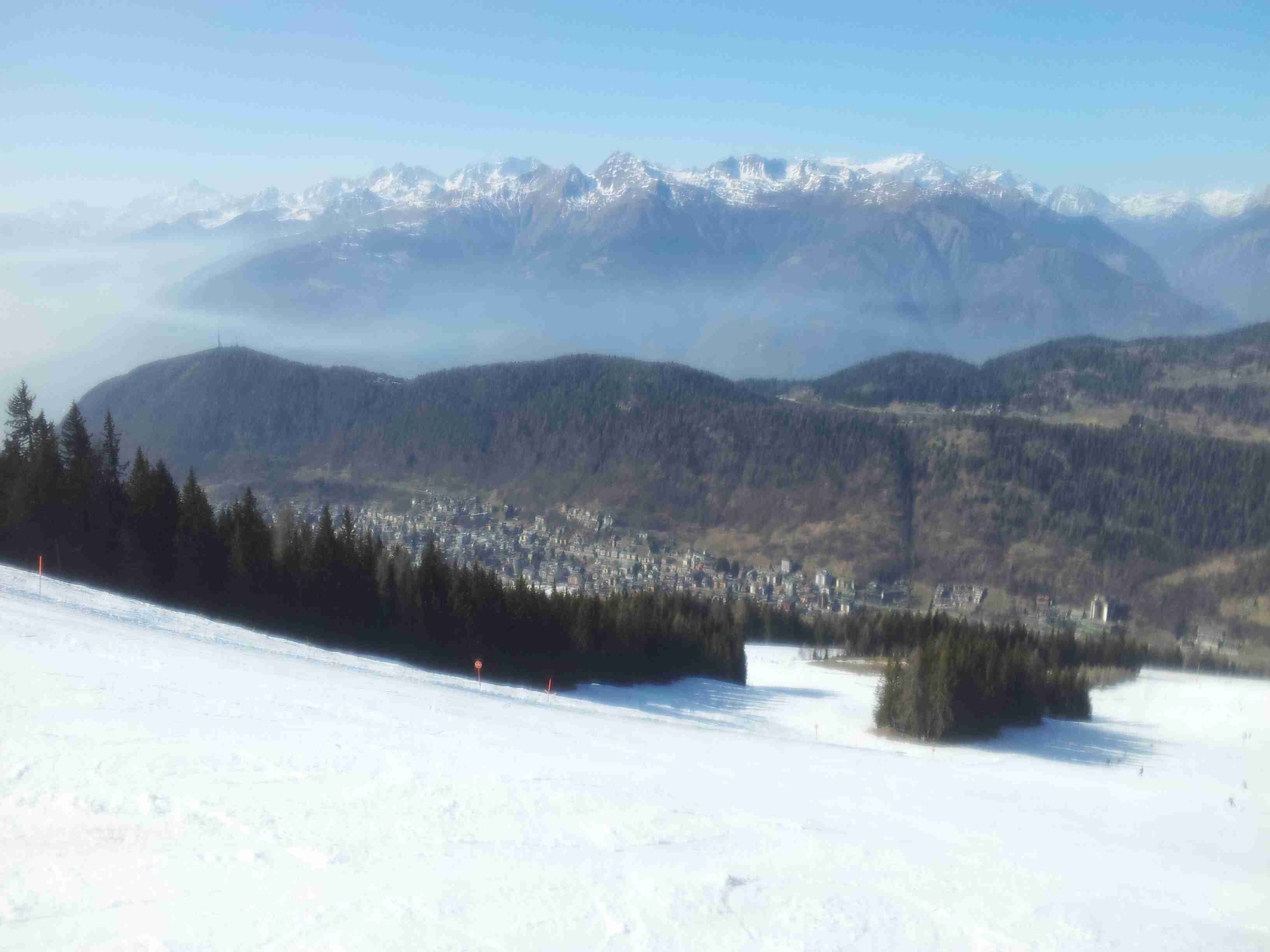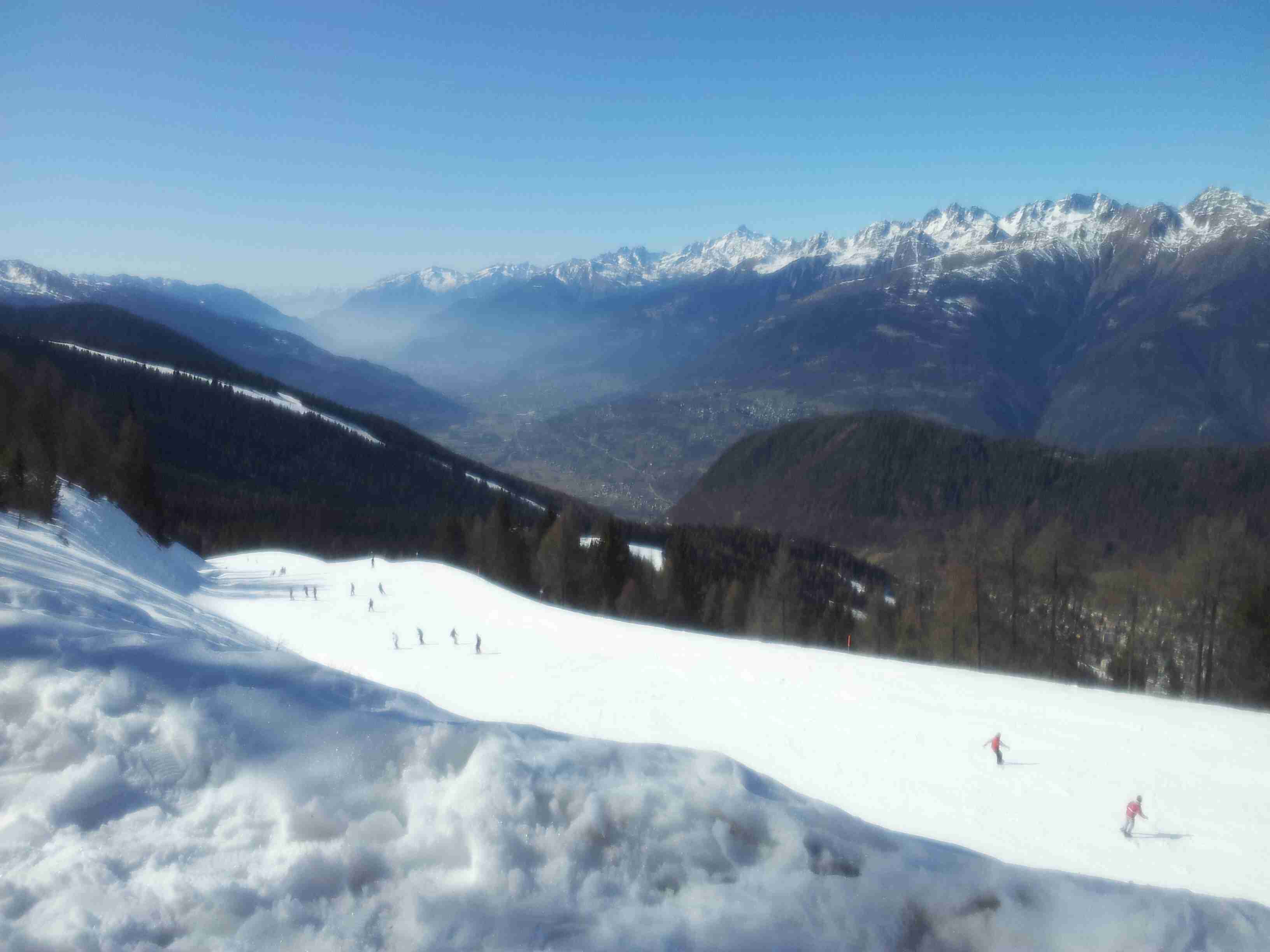 Aprica je mnohem menší než Kronplatz, ale pro nás, starší sportovce, tamní sjezdovky bohatě stačily. Cesta začala v Ústí v pátek podvečer, kdy nás svozový autobus odvezl přes Most do Prahy na parkoviště před hlavním nádražím, kde jsme přestoupili do správného patrového busu s vlekem a v cca 22:00 hod. jsme vyrazili. Cesta ubíhala v pohodě, v Berouně přistoupily dvě dámy (později jsme s nimi seděli u stolu a jejich přítomnost byla příjemná a osvěžující), v Plzni jsme naložili cca 15 lyžařů a pak již obligátní pauza na Rozvadově a vzhůru do ciziny. Hladce jsme prospali cestu Německem, na hranicích s Rakouskem byla další přestávka, Rakousko jsem vůbec nezaregistroval a probral jsem se až na dálnici směrem dolů z Brenneru. Minuli jsme odbočku na Kronplatz a za Bolzanem, kus před Trentem, jsme opět zastavili, abychom se připravili na cestu do hor. V Mezzolombardo jsme sjeli z dálnice A 22 a zamířili vzhůru k výškám. Od dálnice je to do Apricy cca 120 km, cesta je však klikatá, vede přes Passo del Tonale a autobusu trvá více než tři hodiny. Takže kolem půl dvanácté jsme dorazili na místo určení, přesunuli jsme zavazadla a vybavení do hotelu Cristallo Club, počkali jsme asi hodinu a půl, než byly připraveny pokoje a mohli jsme se nastěhovat. Začal tak sedmidenní pobyt plný slunce. Již dlouho jsme nezažili tak slunečné počasí, samozřejmě se to podepisovalo na kvalitě sněhu – po poledni již nebylo snadné jezdit po 6,5 km dlouhé sjezdovce Superpanoramica, vedoucí cca 50 m od našeho hotelu, až dolů do spodní stanice sedačky, ale její horní polovina bylo pořád v pohodě, zvláště pokud se ještě doplnila úsekem červené sjezdovky Valscesa East. Bylo to šest dní lyžování plných slunce, dobrého jídla i pití, neboť jsme hned v sobotu objevili kousek od hotelu Irish Pub, kde jsme si téměř každý den dávali před večeří jednoho Guinesse. Většinu kilometrů jsme najezdili v části zvané Baradello na již zmiňované modré sjezdovce Superpanoramica, jednou jsme se vyrazili podívat na nejvyšší místo areálu ve výšce cca 2300 m n. m. a dolů jsme sjeli po červených, které byly v pohodě. K černé sjezdovce Magnolta, patřící k nejobtížnějším v Itálii, jsme se ani nedostali. V sobotu jsme odevzdali do 10:00 pokoje, poté v Palabione, centrální části areálu, skipasy, naobědvali jsme se v restauraci na zahrádce, ale bylo vidět, že sluneční svit se již začíná vyčerpávat. A skutečně, naši kolegové, kteří dorazili zpět na hotel až chvíli po nás, již zmokli.